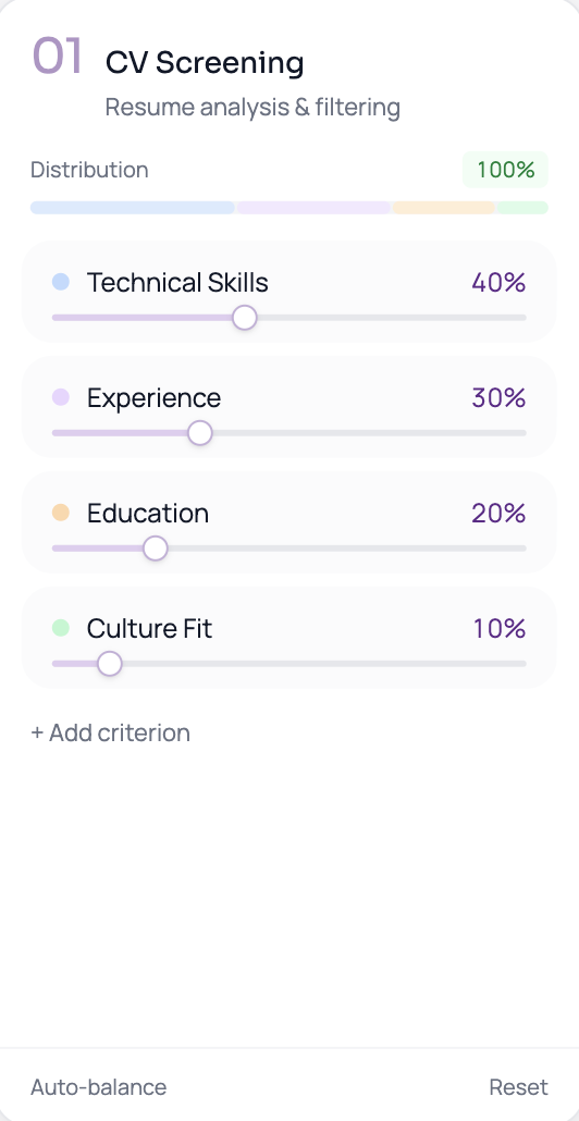 Evaluations match what your team actually values in a candidate.